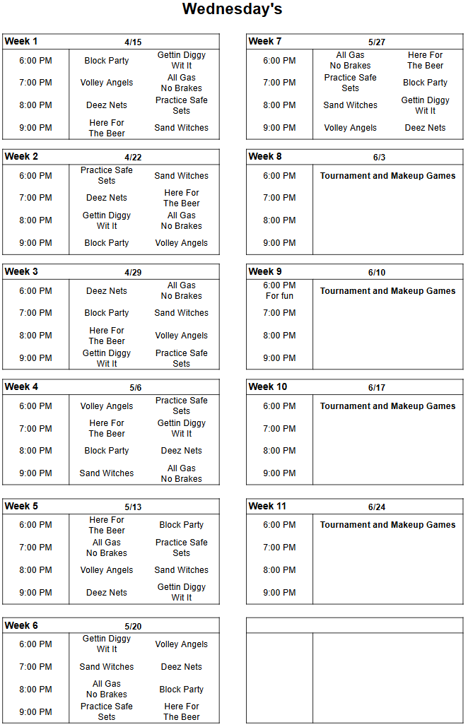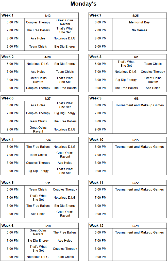 - Volleyball Drink Specials -