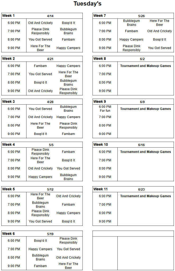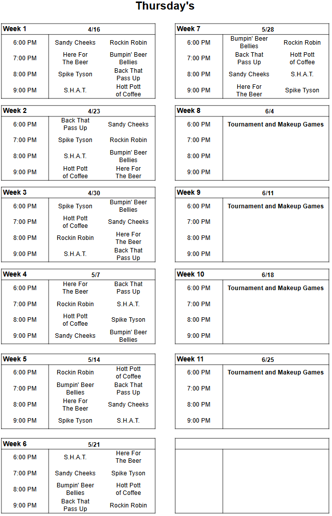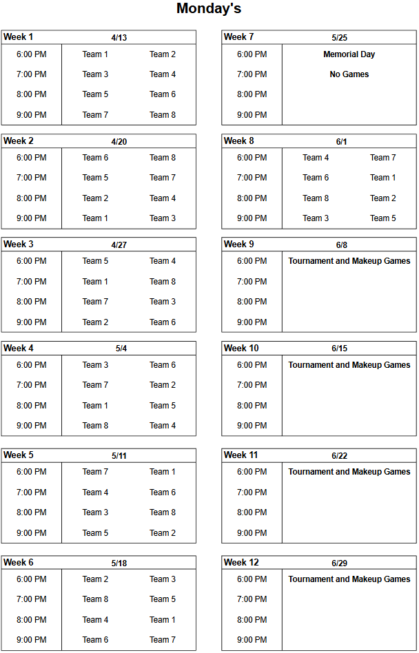 Be courteous to other teams and start games at scheduled time.